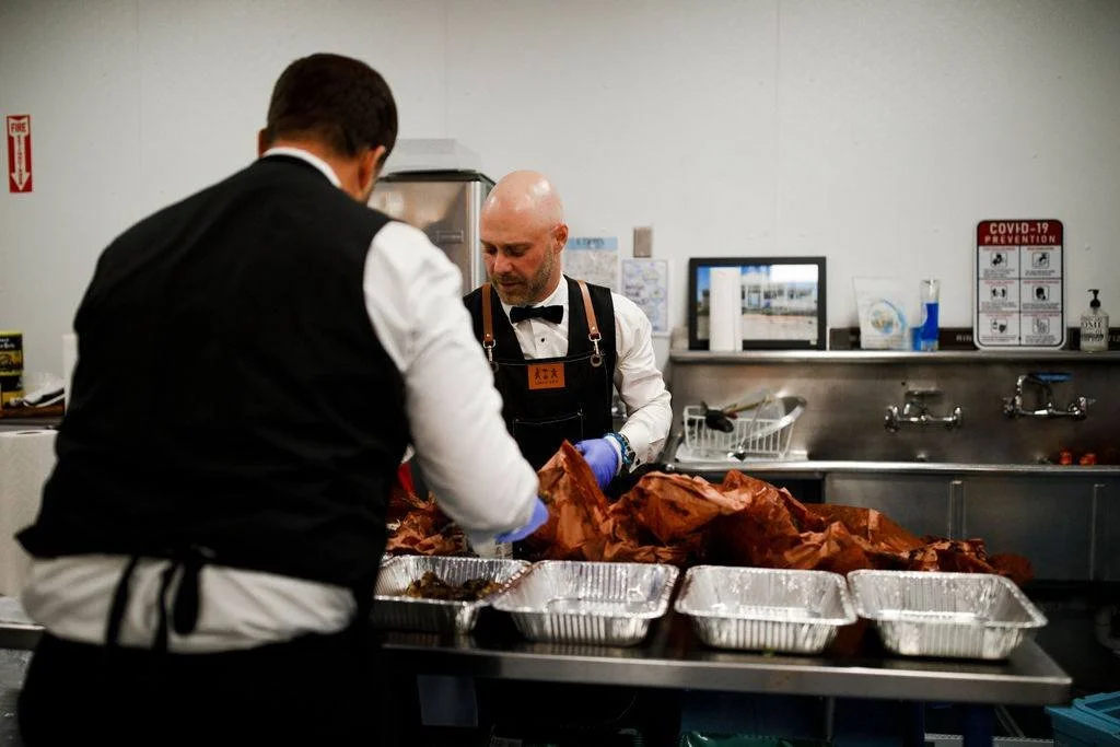 Smoked and carved, with a variety of wings, legs, thighs, and sliced breast.